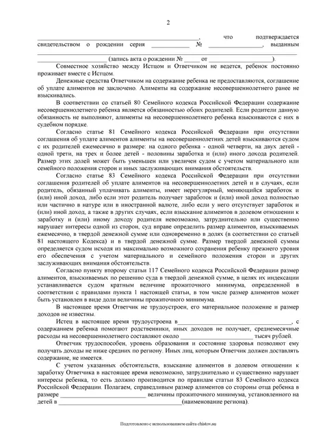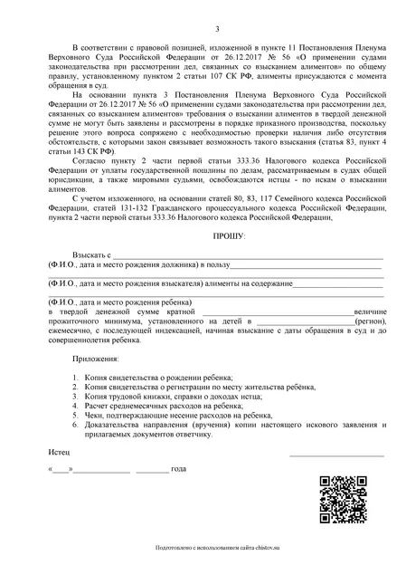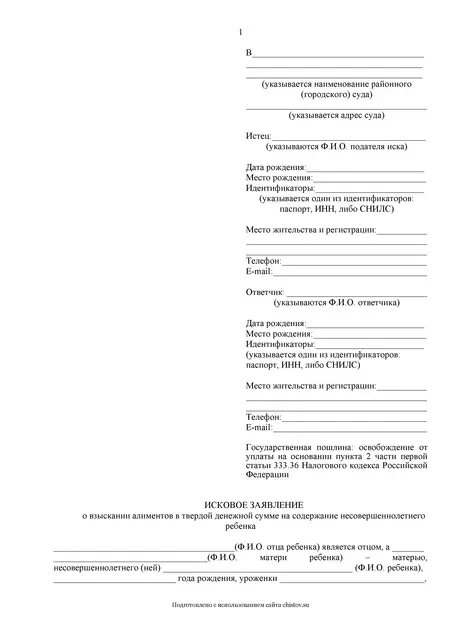 На настоящем сайте Вы можете бесплатно и без регистрации скачать онлайн примерный образец искового заявления о взыскании алиментов на ребенка в твердой денежной сумме (доле величины прожиточного минимума) в форматах Word и PDF, заполнить образец от руки и подать его в суд самостоятельно.