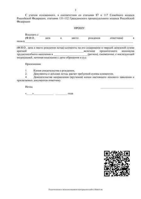 (Ф.И.О., дата и место рождения истца) алименты на его содержание в твердой денежной сумме кратной _____________________________________величине прожиточного минимума трудоспособного населения в ________________________(регион), ежемесячно, с последующей индексацией, начиная взыскание с даты обращения в суд.