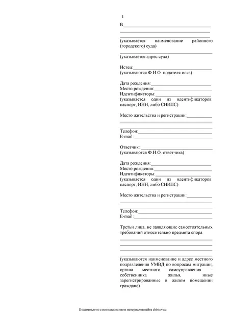 Образец типового иска – выписать из квартиры по социальному найму для приватизации через суд.