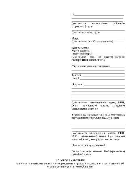 Образец искового заявления о признании незаконным решения об отказе в зачете специального стажа и досрочного установления пенсии.
