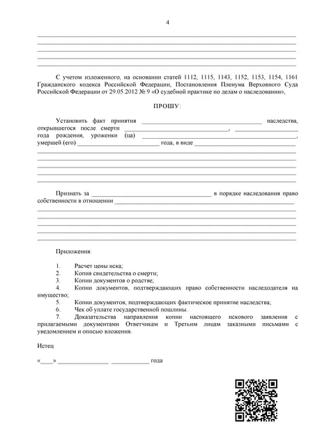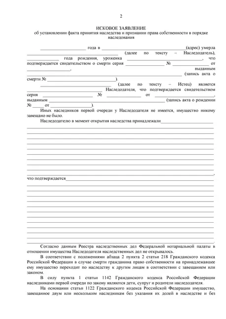Образец иска в суд при пропуске срока вступления в наследство через нотариуса. Исковое заявление о фактическом принятии наследства поможет в восстановлении срока.
