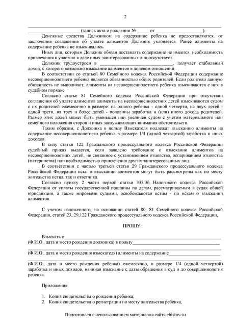 Таким образом, если должник по алиментам имеет постоянный и достаточный для содержания ребенка заработок, то, по общему правилу, за взысканием алиментов первоначально следует обращаться к мировому судье с заявлением о выдаче судебного приказа, а не в федеральный суд с иском.