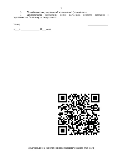 3. Доказательства направления копии настоящего искового заявления с приложениями Ответчику на 2 (двух) листах.