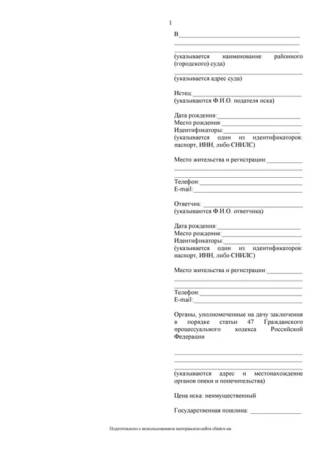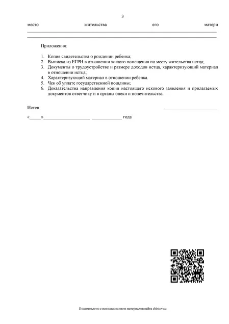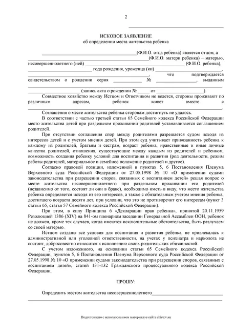 Образец искового заявления в суд об определении места жительства ребенка вместе с матерью.