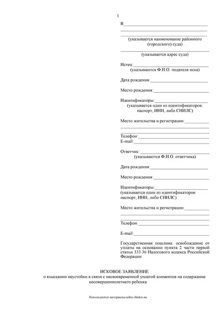 На настоящем сайте Вы можете бесплатно и без регистрации скачать онлайн примерный образец искового заявления о взыскании неустойки с неплательщика алиментов за просрочку. в форматах Word и PDF, заполнить образец от руки и подать его в суд самостоятельно.