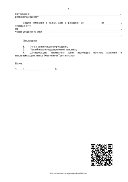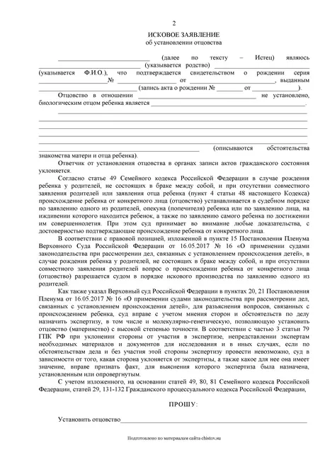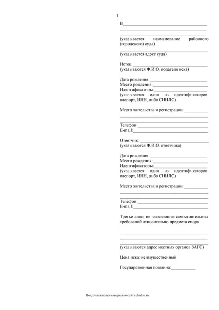 Образец иска об установлении отцовства для заполнения от руки и самостоятельной подачи в суд.
