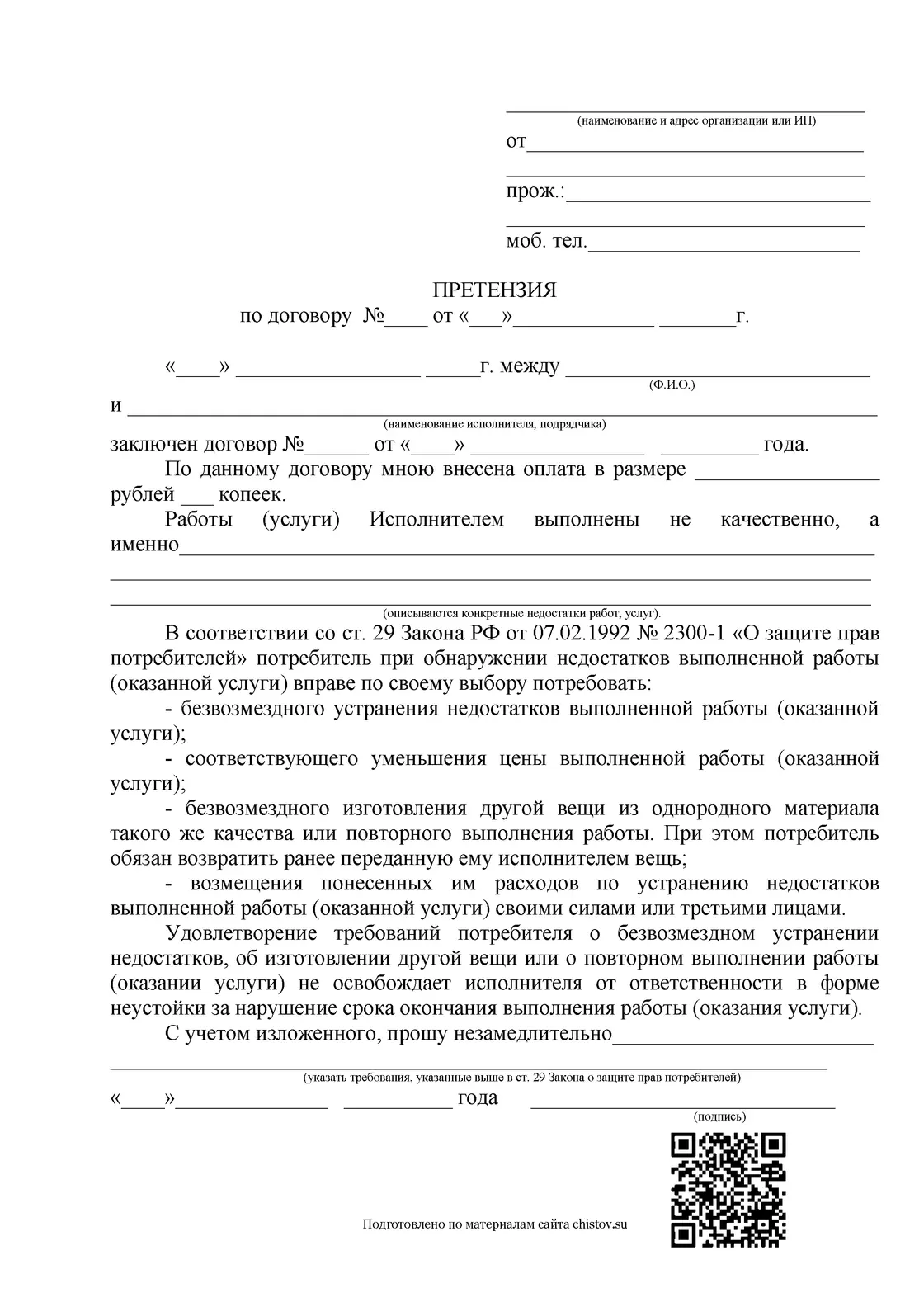 Что делать, если качество выполненных по договору работ или оказанных услуг оставляет желать лучшего? Что можно требовать и как правильно вручить претензию?