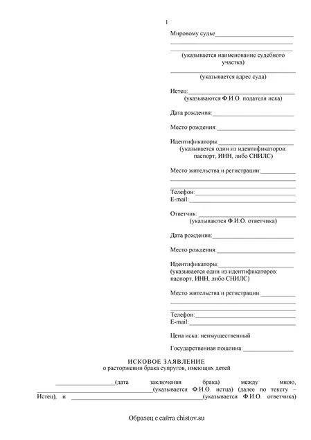 На настоящем сайте Вы можете бесплатно и без регистрации скачать онлайн примерный шаблон иска о разводе супругов при наличии детей от имени супруги в форматах Word и PDF, заполнить образец от руки и подать его в суд самостоятельно.